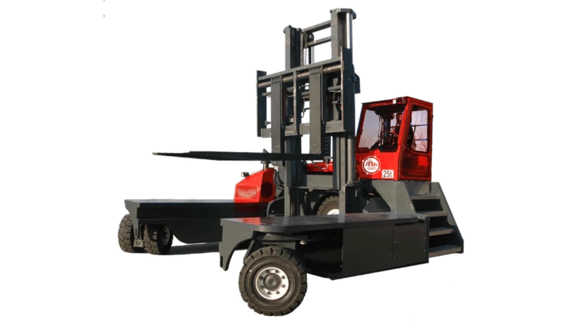 Le COMBI C25000 est un chariot multidirectionnel à prise latérale conçu pour la manutention de charges extrêmement lourdes et longues dans les secteurs industriels et BTP. Avec ses quatre sens de marche (frontal, latéral, carrousel) et ses pneus pleins souples ou bandages caoutchouc à faible poinçonnement, il garantit une stabilité exceptionnelle même en conditions exigeantes. Le modèle COMBi C25000 offre une capacité impressionnante de 25 tonnes, associée à des mâts Duplex ou Triplex allant jusqu’à 6350 mm, ce qui en fait une solution robuste, polyvalente et idéale pour les opérations de manutention lourde nécessitant précision et sécurité. Avantages Mobilité multidirectionnelle pour manœuvrer des charges très lourdes dans des zones restreintes. Déplacement latéral optimisant l’espace de stockage et la circulation. Stabilité renforcée grâce aux pneus pleins souples ou bandages caoutchouc à faible poinçonnement. Sécurité accrue pour le transport de charges longues et massives. Polyvalence adaptée aux matériaux imposants : acier, béton, bois massif, structures préfabriquées. Productivité améliorée grâce au système carrousel et aux changements rapides de direction. Conçu pour des environnements industriels intensifs et opérations difficiles. Caractéristiques techniques Secteurs d’utilisation : Industrie, BTP Énergie : Moteur diesel ou GPL Capacité de levage : 25 000 kg Hauteur de levage : Mâts Duplex ou Triplex, de 3000 mm à 6350 mm Équipements et conception Chariot multidirectionnel à prise latérale Quatre sens de marche : frontal, latéral, carrousel Pneus pleins souples ou bandages caoutchouc Faible poinçonnement Structure surdimensionnée pour charges extrêmes Mâts Duplex ou Triplex haute levée Conçu pour la manutention de charges très lourdes, longues ou volumineuses Applications et usages Le COMBI C25000 est conçu pour des opérations de manutention lourde telles que le déplacement de structures métalliques, de blocs de béton, de bois massif de grande dimension, d’éléments préfabriqués ou de matériaux industriels imposants. Il excelle dans les environnements où puissance, robustesse et mobilité multidirectionnelle sont essentielles pour travailler efficacement dans des zones à l’espace restreint.