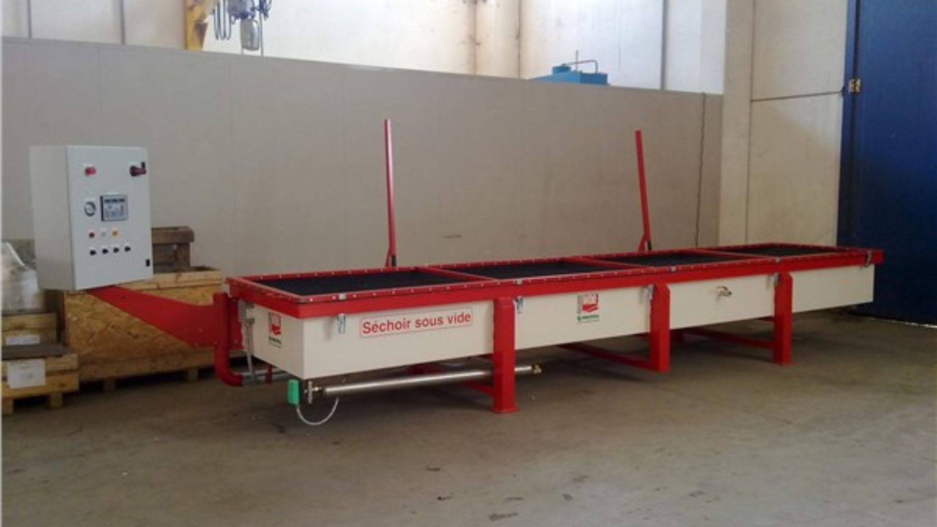 Le séchoir sous vide à presse M 1,6, développé par la société WDE MASPELL, est une solution industrielle avancée dédiée au séchage du bois. Basé sur une cellule cylindrique à plaques chauffantes fonctionnant sous vide continu (modèle PRIMO), ce système intègre une technologie brevetée permettant d’appliquer une pression constante de 10 tonnes par m² sur les planches durant l’ensemble du cycle de séchage. Il est également équipé du système API avec écran tactile, qui assure un contrôle automatique des paramètres de température et de pression en fonction du type de bois, de son épaisseur et de son taux d’humidité, garantissant ainsi un séchage optimisé, rapide et de haute qualité. Caractéristiques techniques Modèle : M 1,6 Capacité : de 0,3 à 10 m³ Type : séchoir sous vide à plaques avec système de presse Pression appliquée : 10 tonnes/m² Structure : cellule cylindrique Système de chauffage : plaques chauffantes Technologie : vide continu Système de contrôle : API avec écran tactile Fonction de régulation : température et pression automatiques Avantages Amélioration significative de la qualité du séchage Redressement des planches déformées (voilage, torsion) Accélération du cycle de séchage Automatisation complète du processus Réduction des défauts et pertes de matière Contrôle précis grâce à l’interface tactile Applications Scieries Industrie du bois Fabrication de meubles Menuiserie industrielle Séchage de bois feuillus et résineux Traitement de bois techniques ou sensibles Principe de fonctionnement Le bois est introduit dans une cellule cylindrique équipée de plaques chauffantes. Le vide continu permet d’extraire rapidement l’humidité, tandis que la pression appliquée assure le maintien et le redressement des planches. Le système API avec écran tactile ajuste automatiquement la température et la pression en fonction des caractéristiques du bois, garantissant un séchage homogène, rapide et contrôlé. Points forts Technologie combinée vide + pression + automatisation Séchage rapide et uniforme Amélioration de la stabilité du bois Interface intuitive et contrôle intelligent Adaptation automatique aux différents types de bois