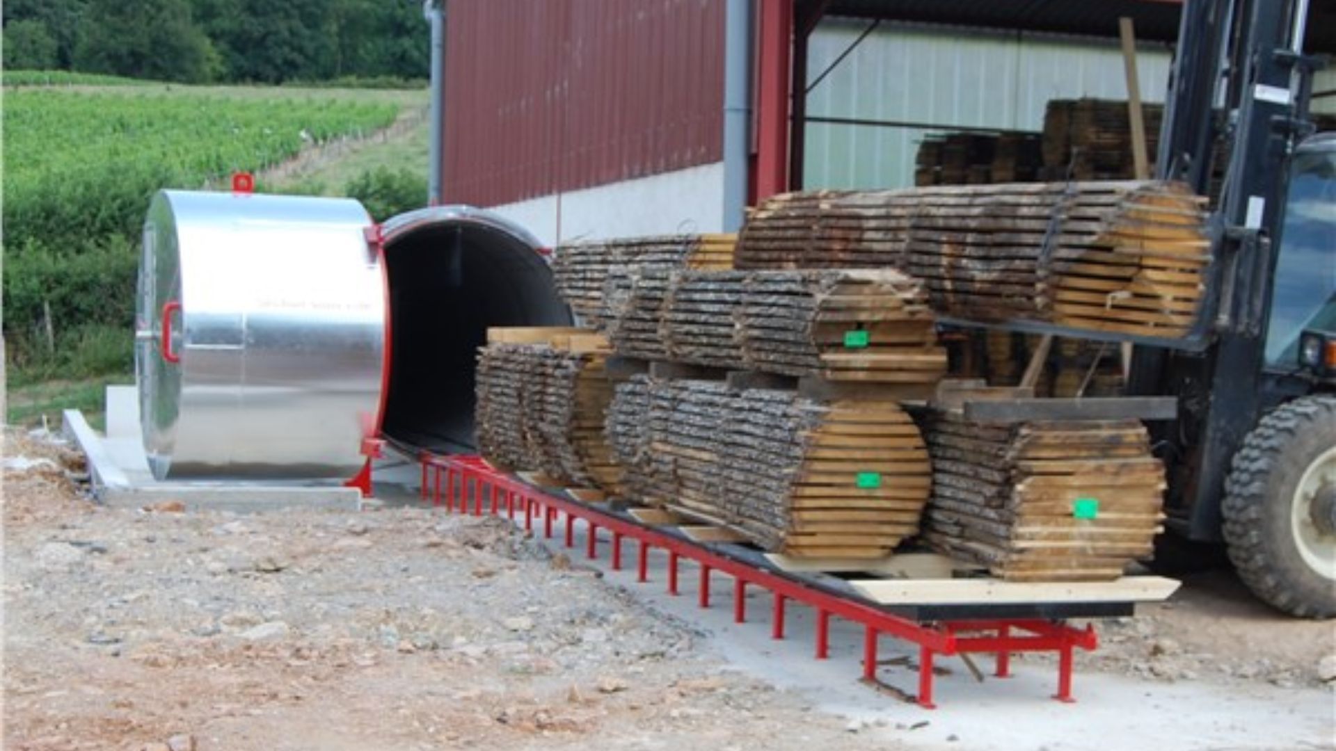 Le séchoir à ventilation ROLL 1.8 E 6 L 6000 est un équipement industriel destiné au séchage du bois par circulation d’air chaud. Ce système fonctionne avec une cellule de type cylindrique (modèle ROLL) et utilise un procédé de chauffage par ventilation, avec possibilité de fonctionnement sous vide continu ou discontinu. Conçu pour le séchage de piles de bois stratifié, il permet un chargement simple par chariot élévateur. Cette technologie assure un séchage efficace, homogène et adapté aux productions nécessitant de grandes capacités et une manipulation facilitée des lots de bois. Caractéristiques techniques Modèle : ROLL 1.8 E 6 L 6000 Type : séchoir à ventilation Capacité nette de bois : 6 m³ Capacité globale : de 5 à 100 m³ par cellule Nombre de piles : 1 Dimensions de la pile : 1200 x 1200 x 6000 mm Système de chauffage : eau chaude (ventilation) Fonctionnement : vide continu ou discontinu possible Structure : cellule cylindrique Dimensions de la cellule : 9000 x 2300 x 2200 mm Poids de la cellule : 5200 kg Avantages Séchage efficace de piles de bois stratifié Chargement facile par chariot élévateur Bonne homogénéité du séchage grâce à la ventilation Adapté aux grandes capacités de production Flexibilité avec fonctionnement sous vide ou sans vide Réduction du temps de manipulation des charges Applications Scieries Industrie du bois Production de bois en lots ou en piles Fabrication de meubles Menuiserie industrielle Traitement de bois feuillus et résineux Principe de fonctionnement Le bois est disposé en piles à l’intérieur de la cellule de séchage. Un système de ventilation diffuse de l’air chaud à travers les piles, assurant une évaporation progressive et homogène de l’humidité. Selon les besoins, le système peut fonctionner avec un vide continu ou discontinu pour améliorer l’efficacité du séchage. Le chargement et le déchargement sont facilités par l’utilisation d’un chariot élévateur. Points forts Grande capacité de séchage (jusqu’à 100 m³ selon configuration) Système adapté au séchage en piles Chargement rapide et pratique Séchage homogène par circulation d’air Solution robuste pour usage industriel
